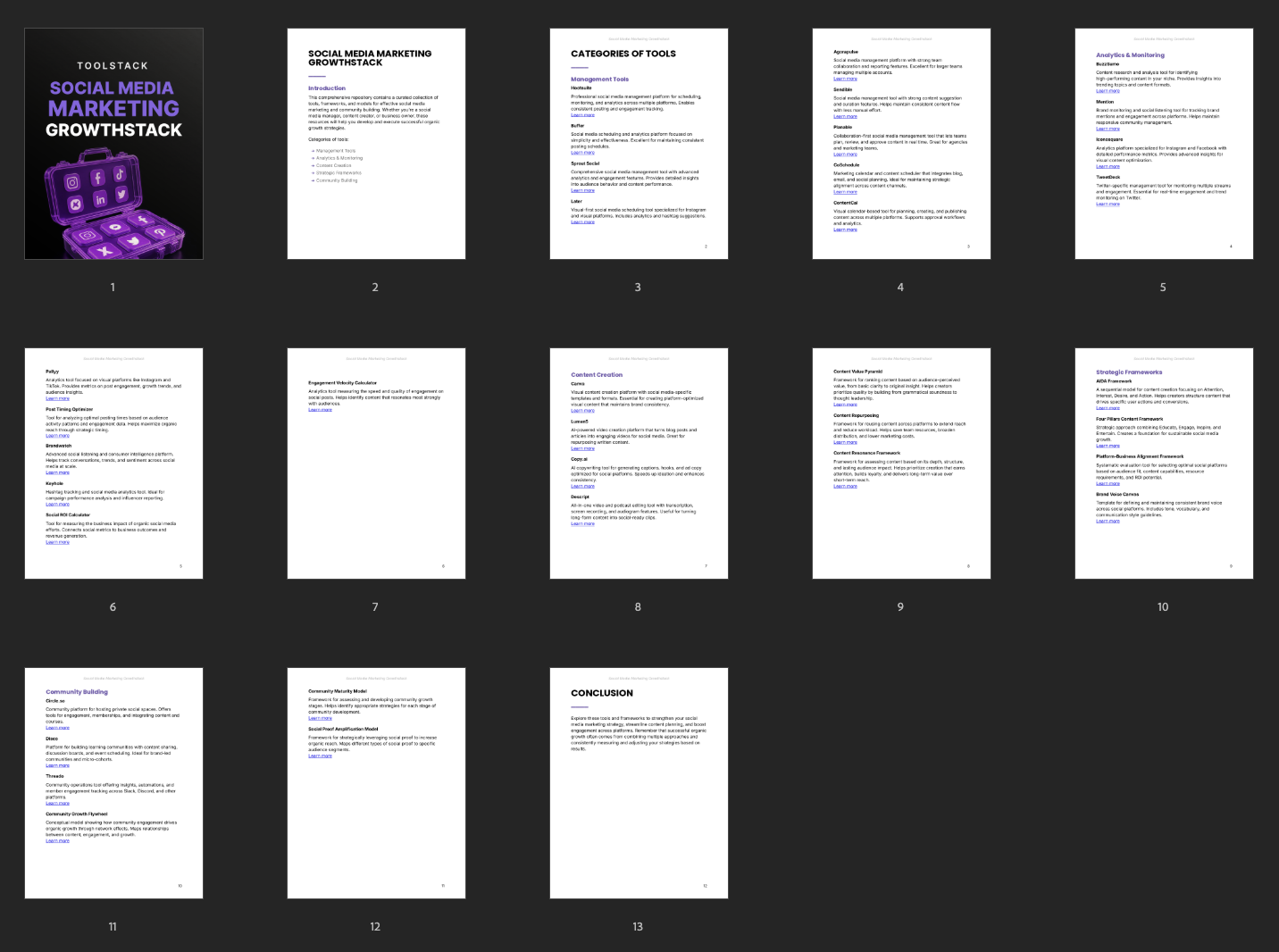 This toolstack gives creators and businesses a complete set of tools and frameworks to plan content, grow communities, track performance, and build a strong social media presence without relying on paid ads.
